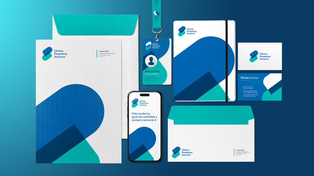 El proceso de rebranding para la Clínica Perpetuo Socorro comenzó con un análisis profundo de la historia y los valores de la marca. A partir de esa base, se diseñó un logotipo más limpio, equilibrado y contemporáneo, con una tipografía clara que comunica accesibilidad y profesionalismo.